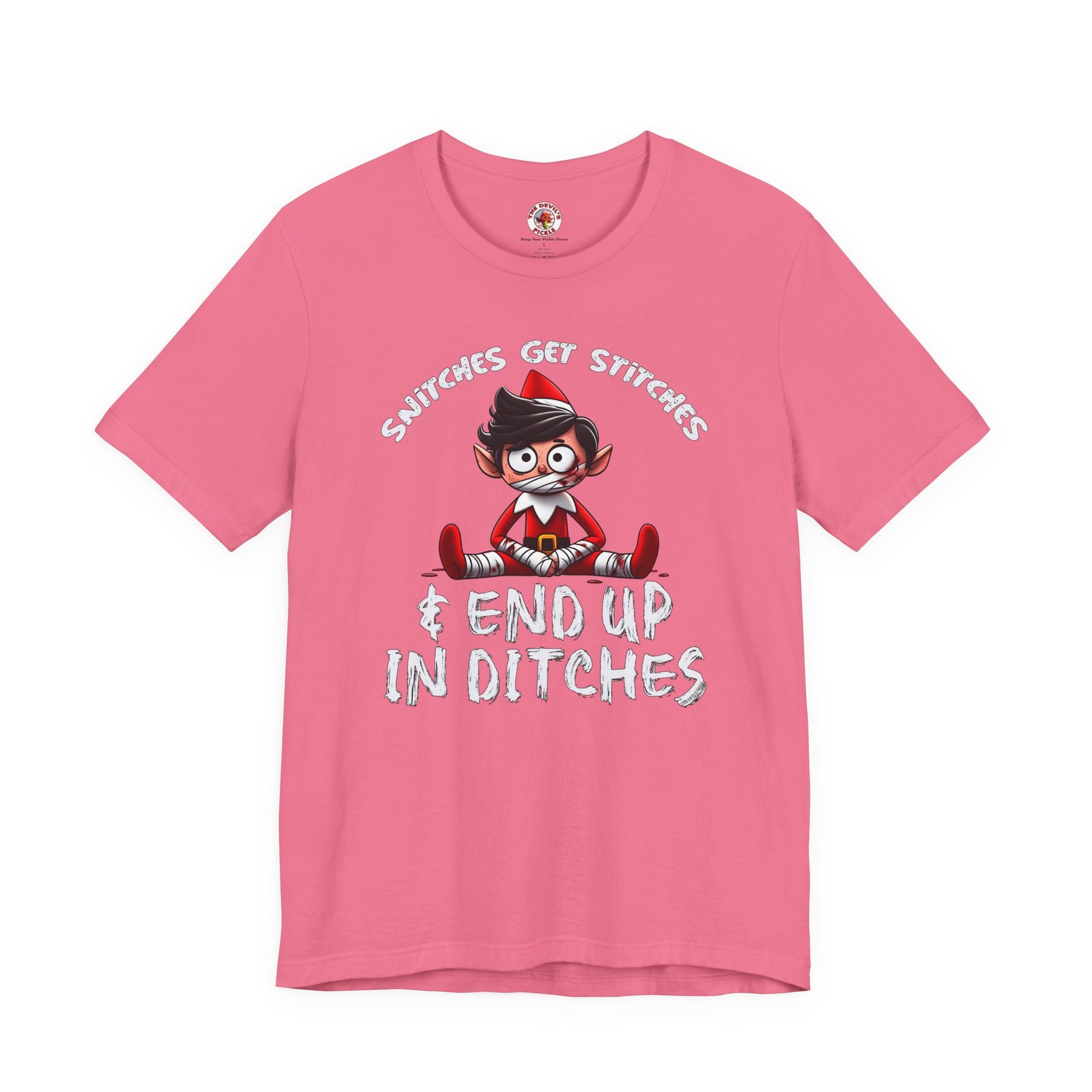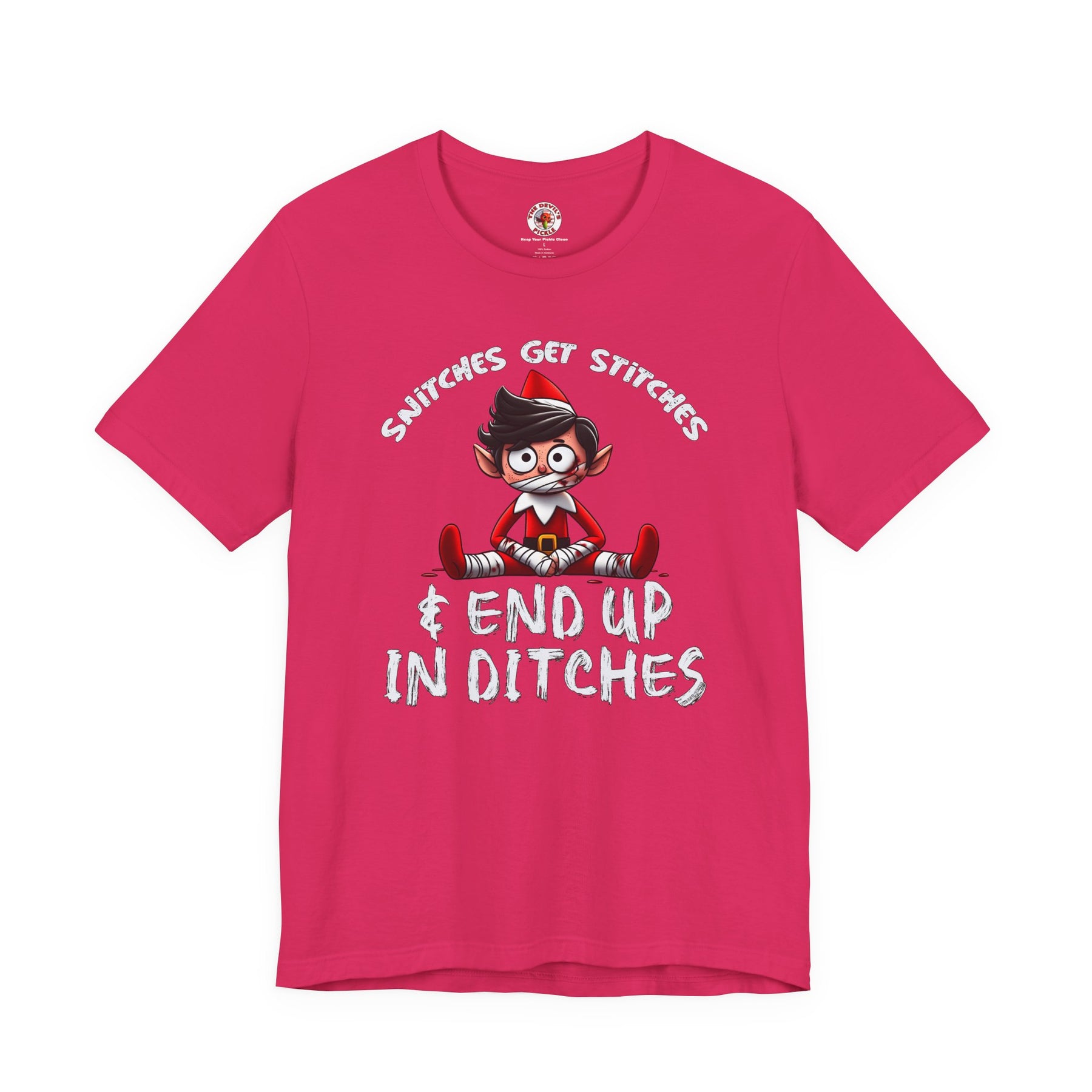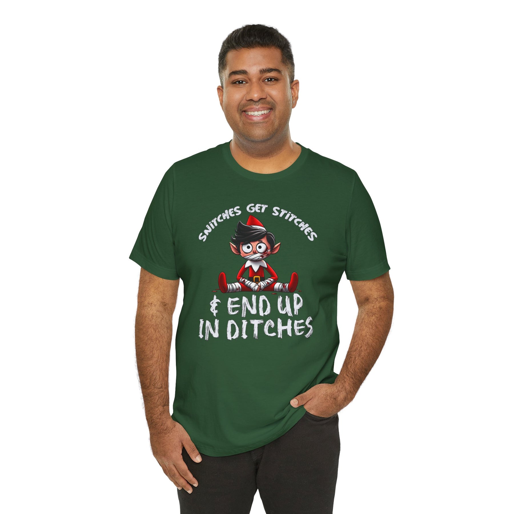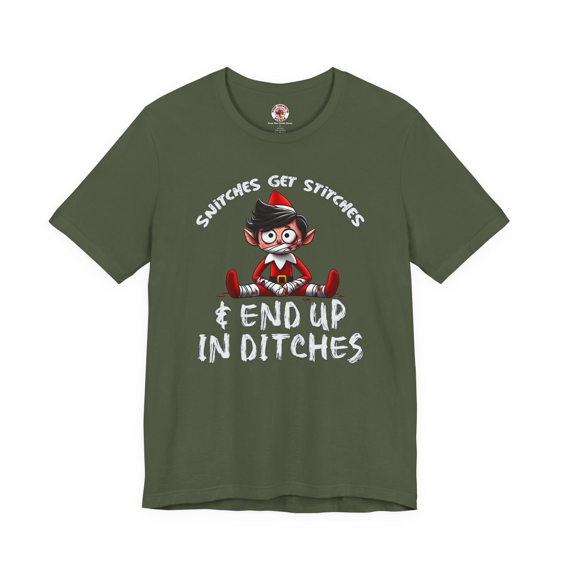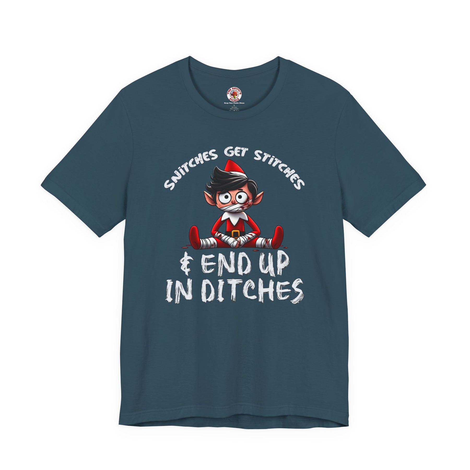 Snitches Get Stitches T-Shirt. Tell everyone exactly what happens to snitches on Christmas.