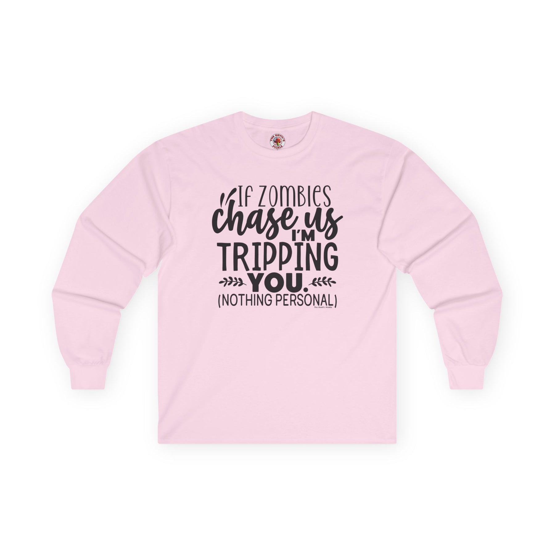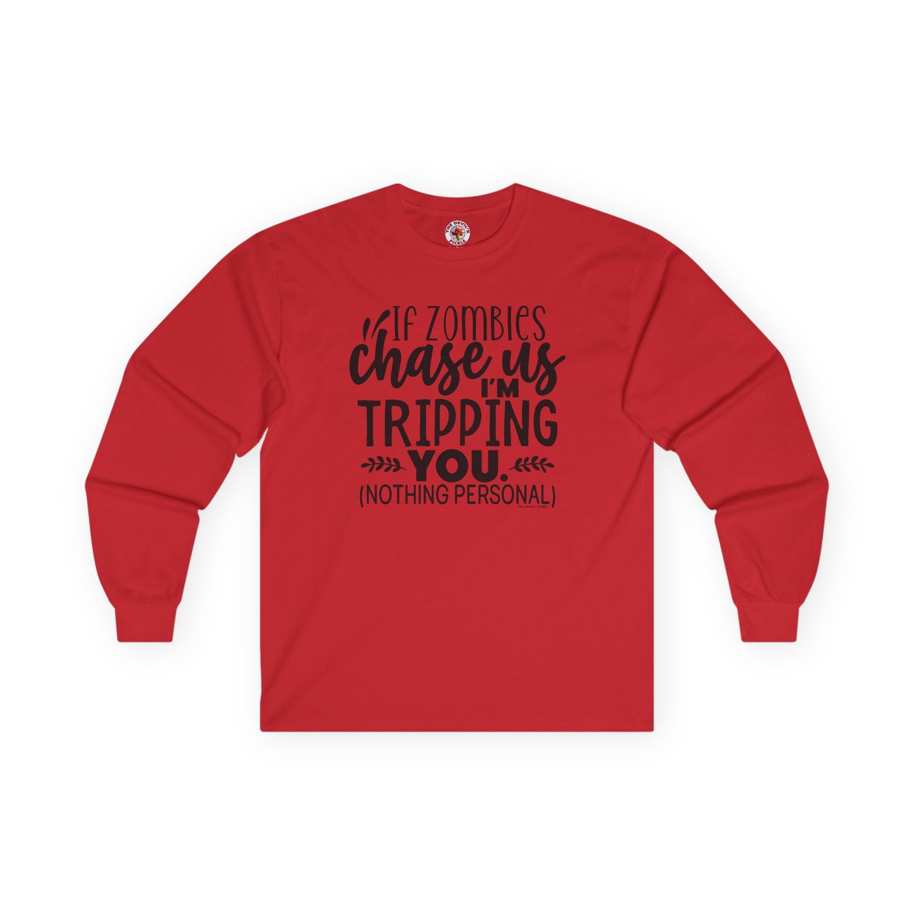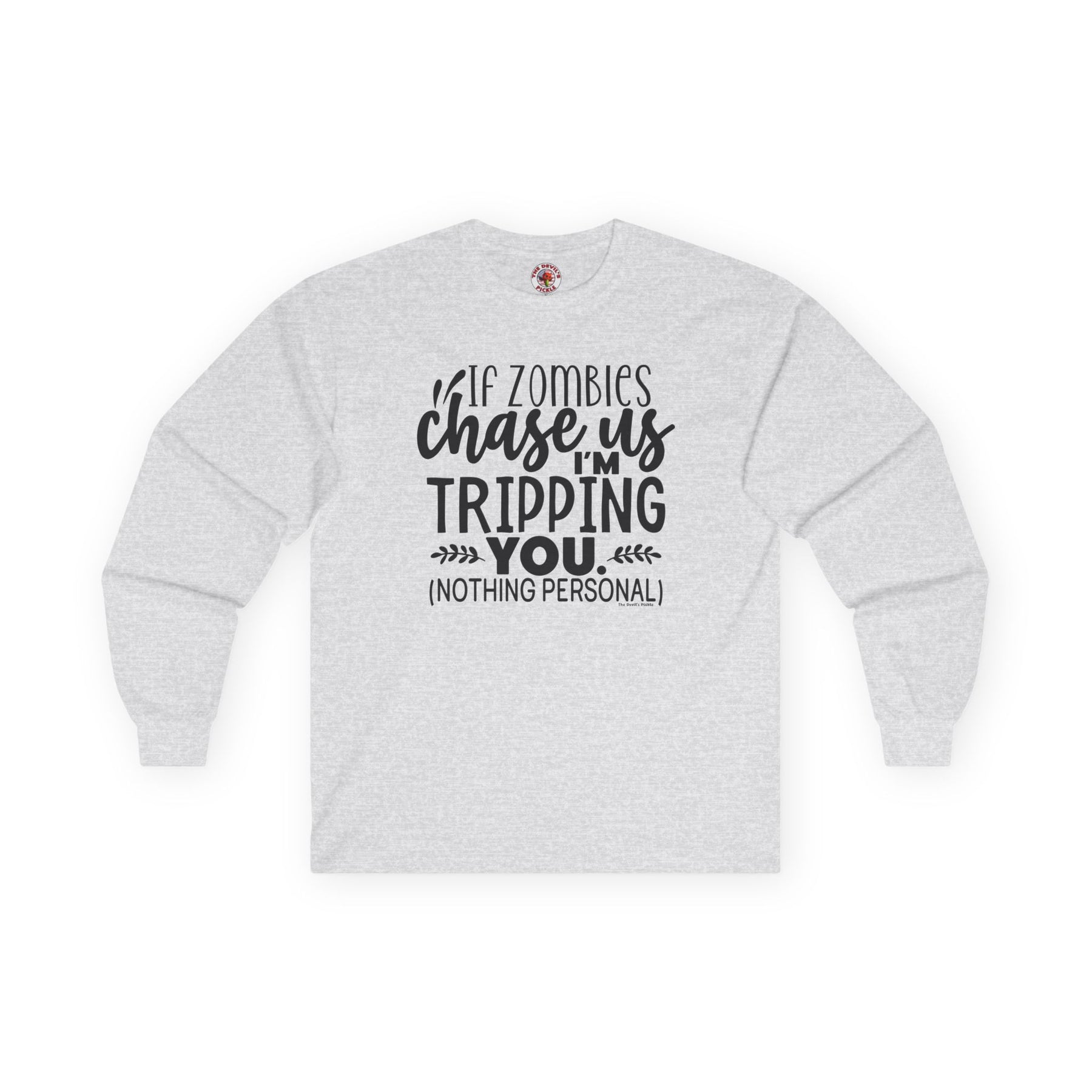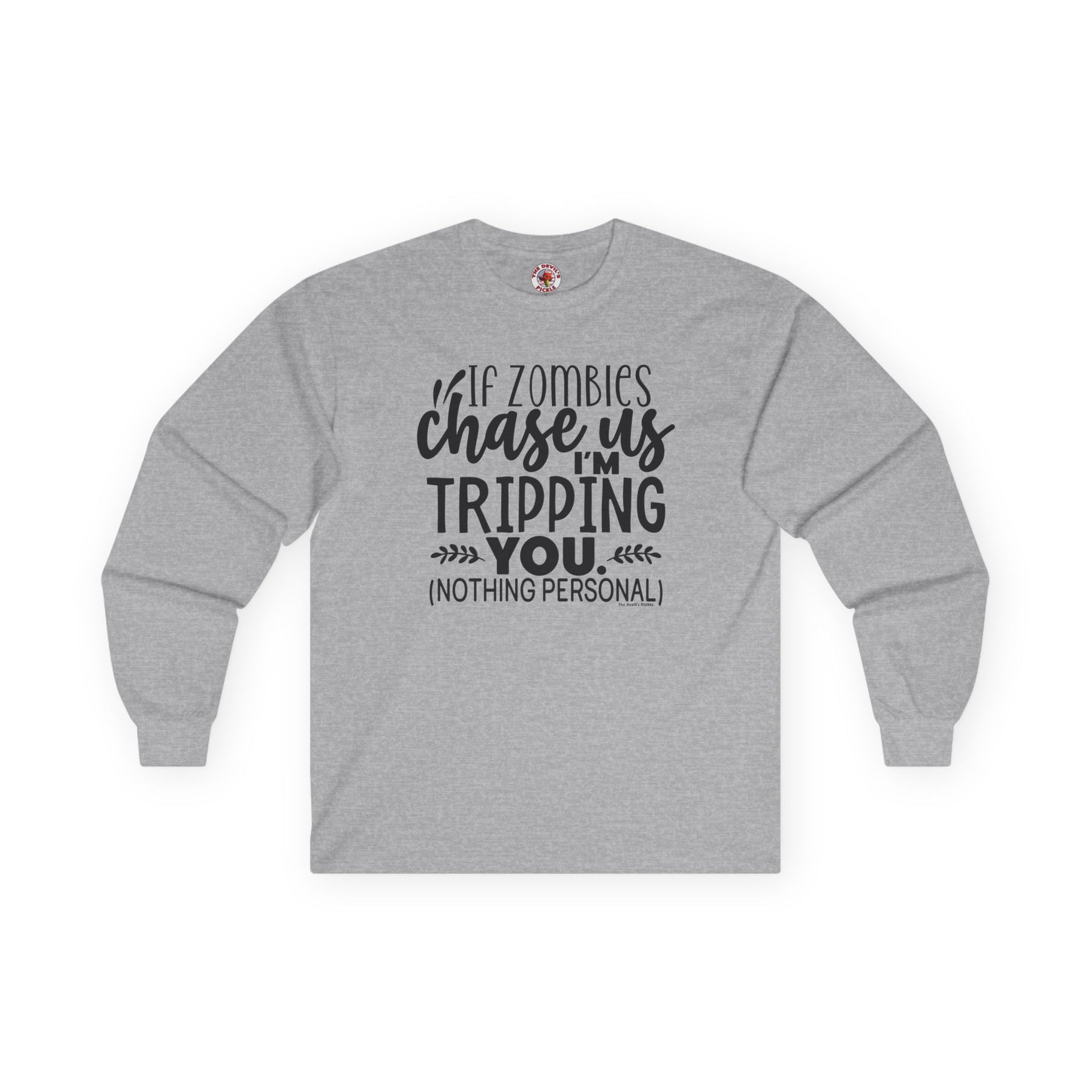 If Zombies Chase Us Long Sleeve Tee. Let everyone know what you're doing when the zombies come.