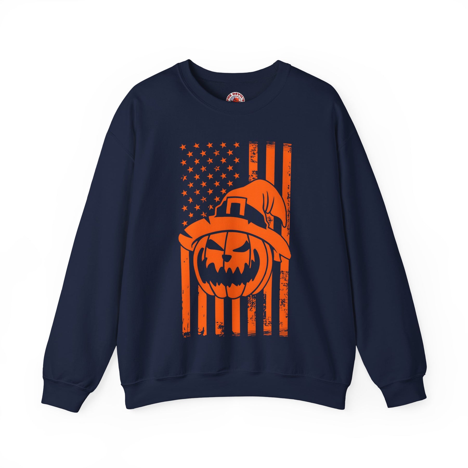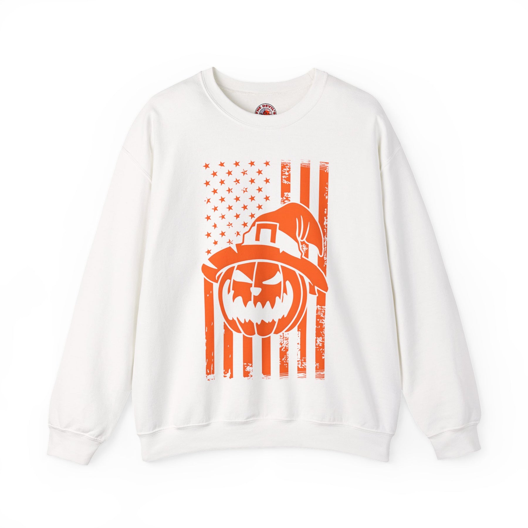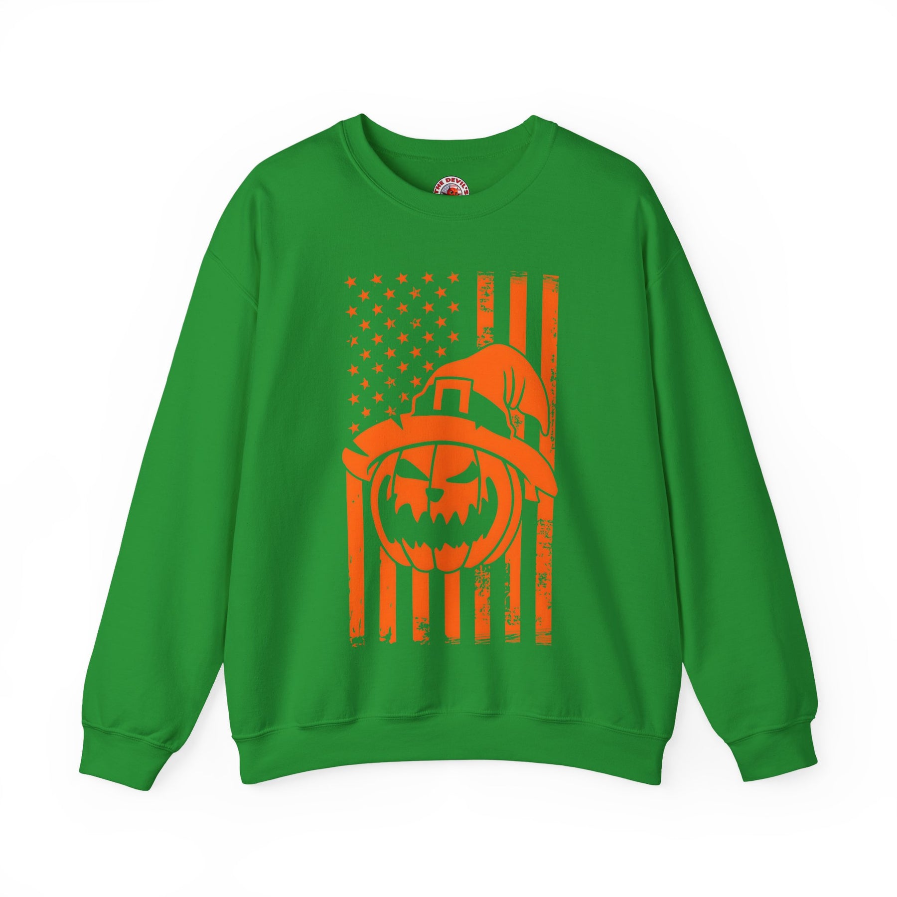 Pumpkin American Flag Crewneck Sweatshirt. Show your American pride and love for Halloween!