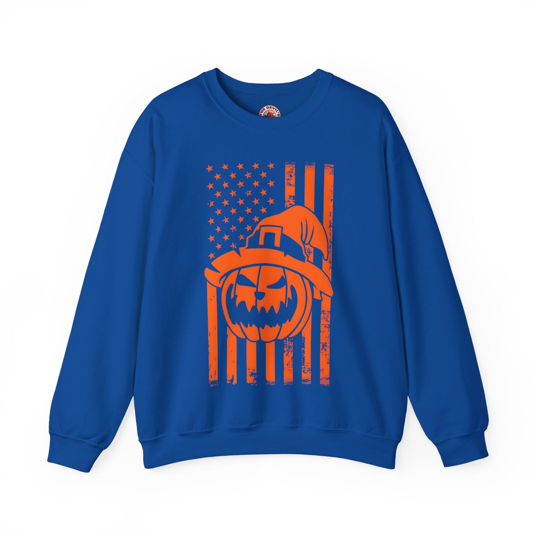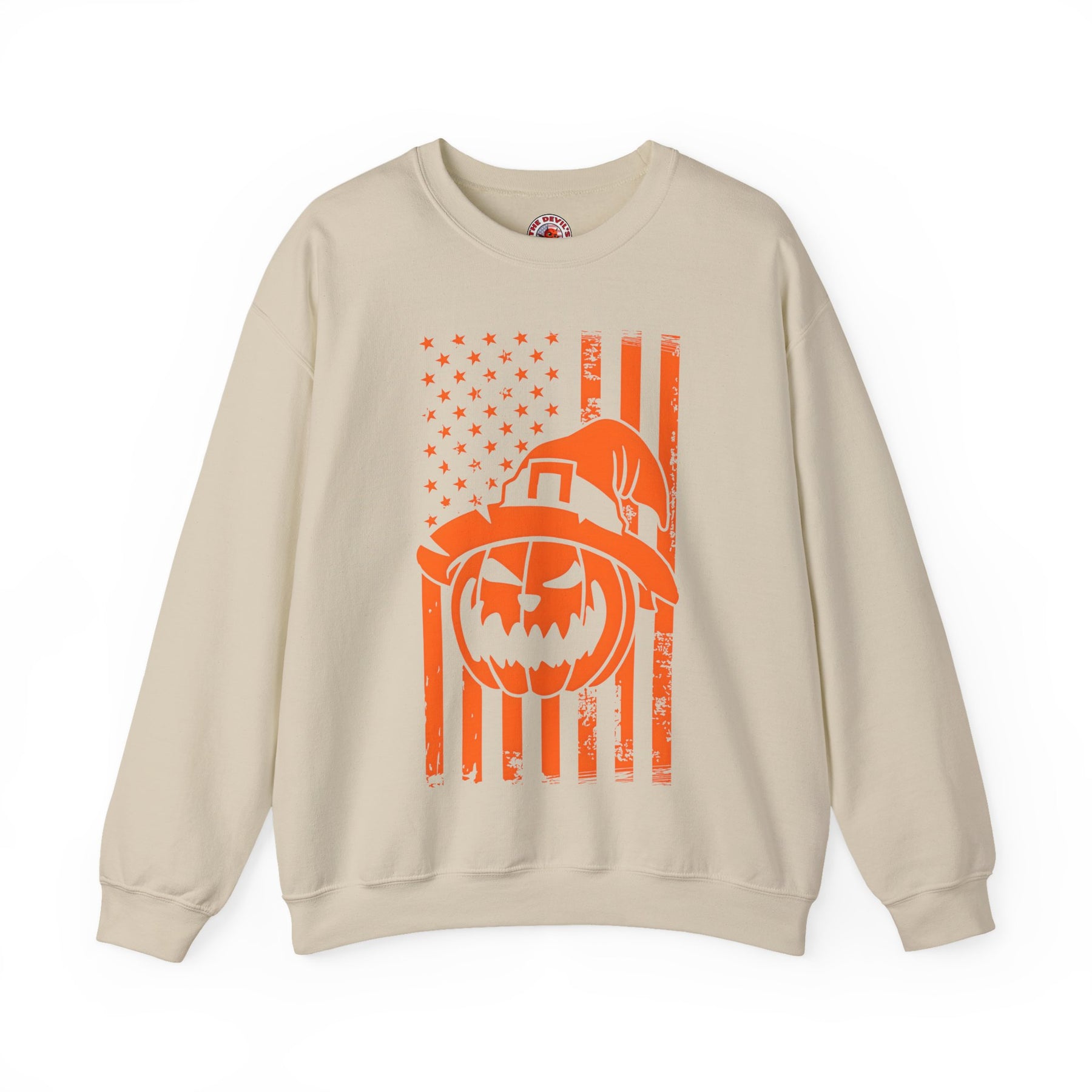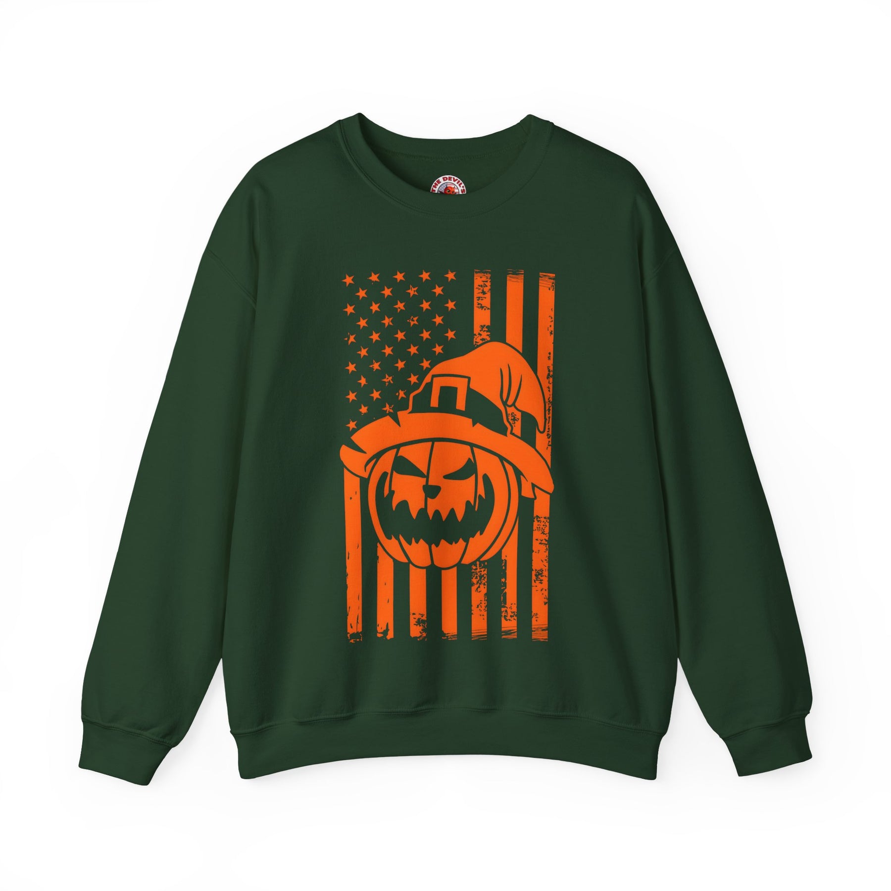 Pumpkin American Flag Crewneck Sweatshirt. Show your American pride and love for Halloween!