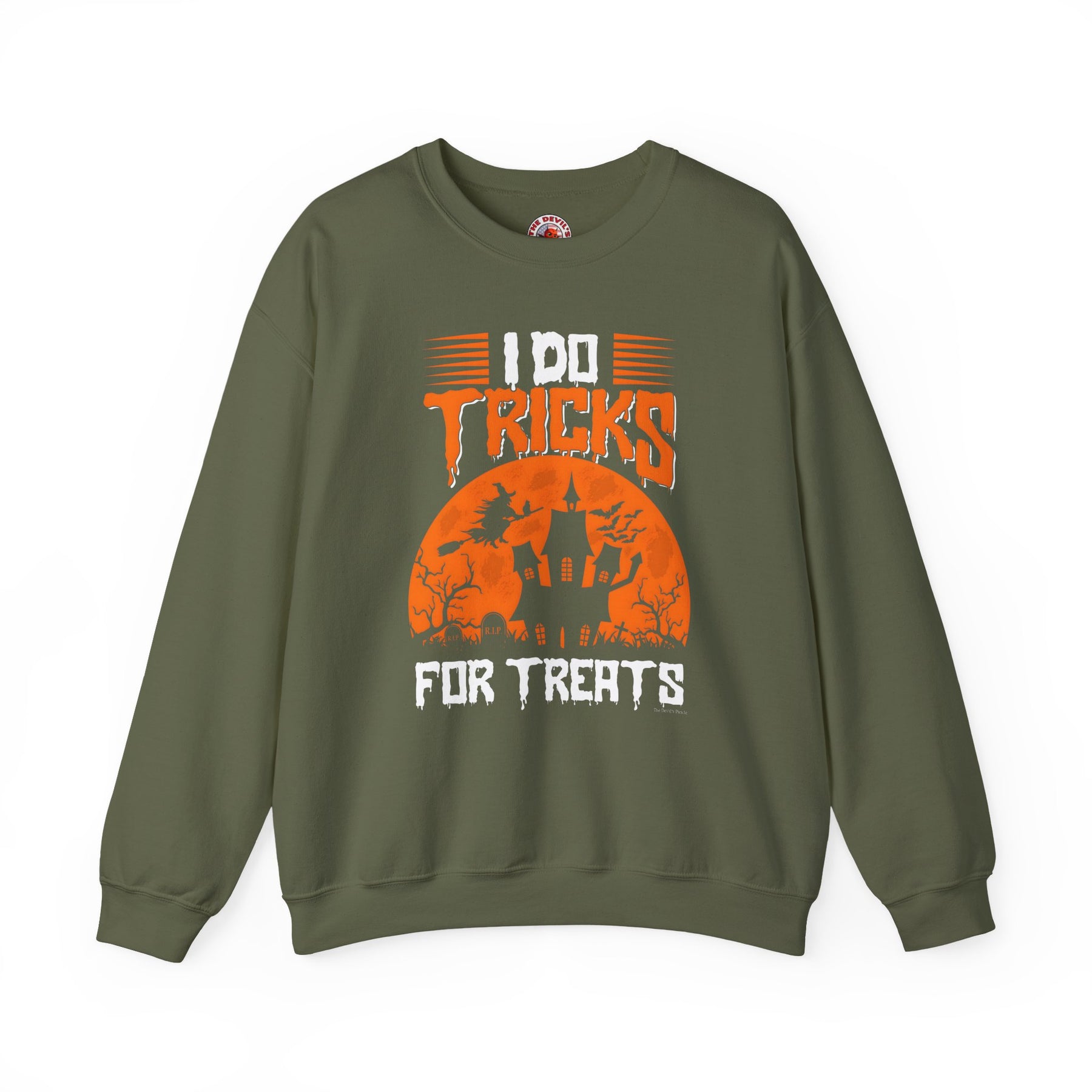 I Do Tricks For Treats Crewneck Sweatshirt. Let everyone know what you're willing to do for a treat this Halloween.