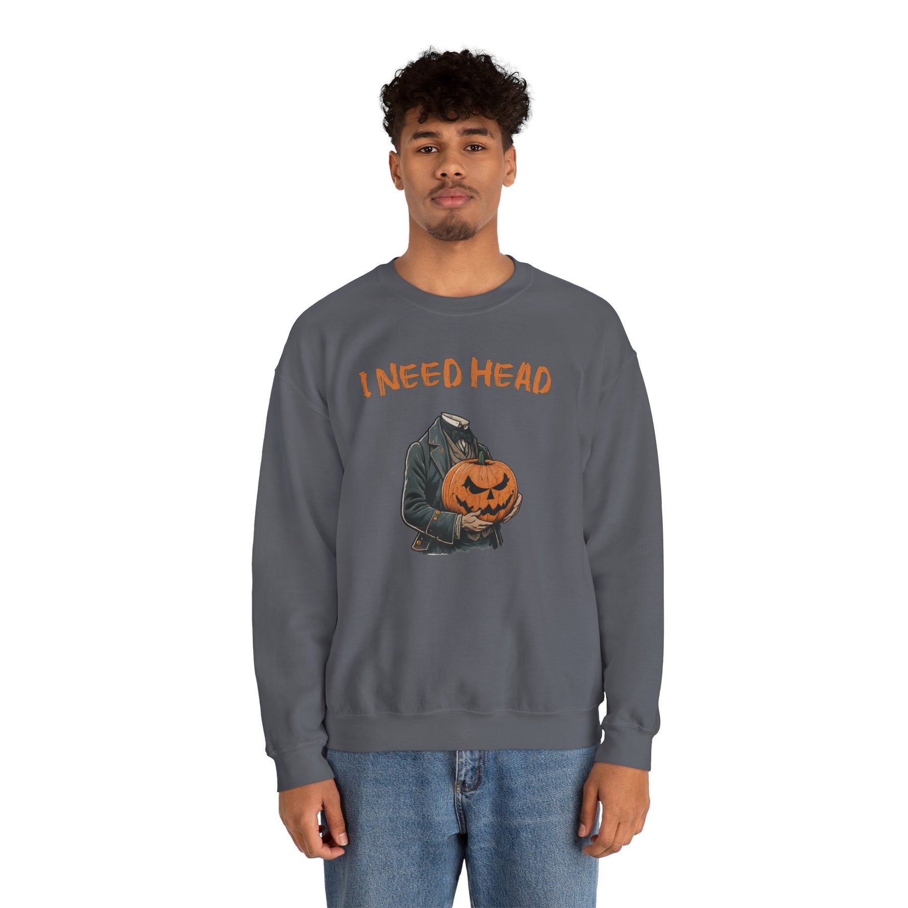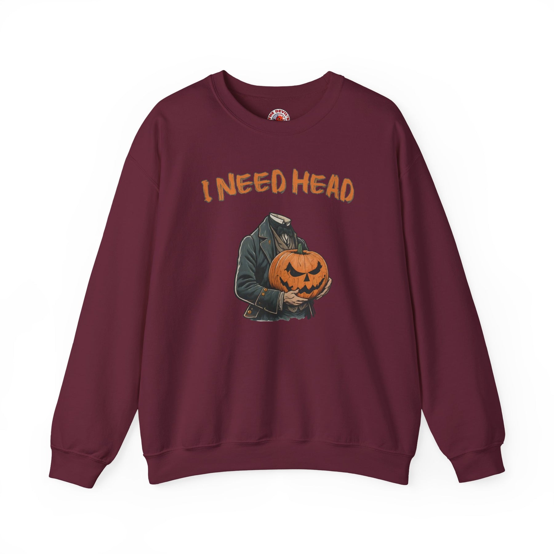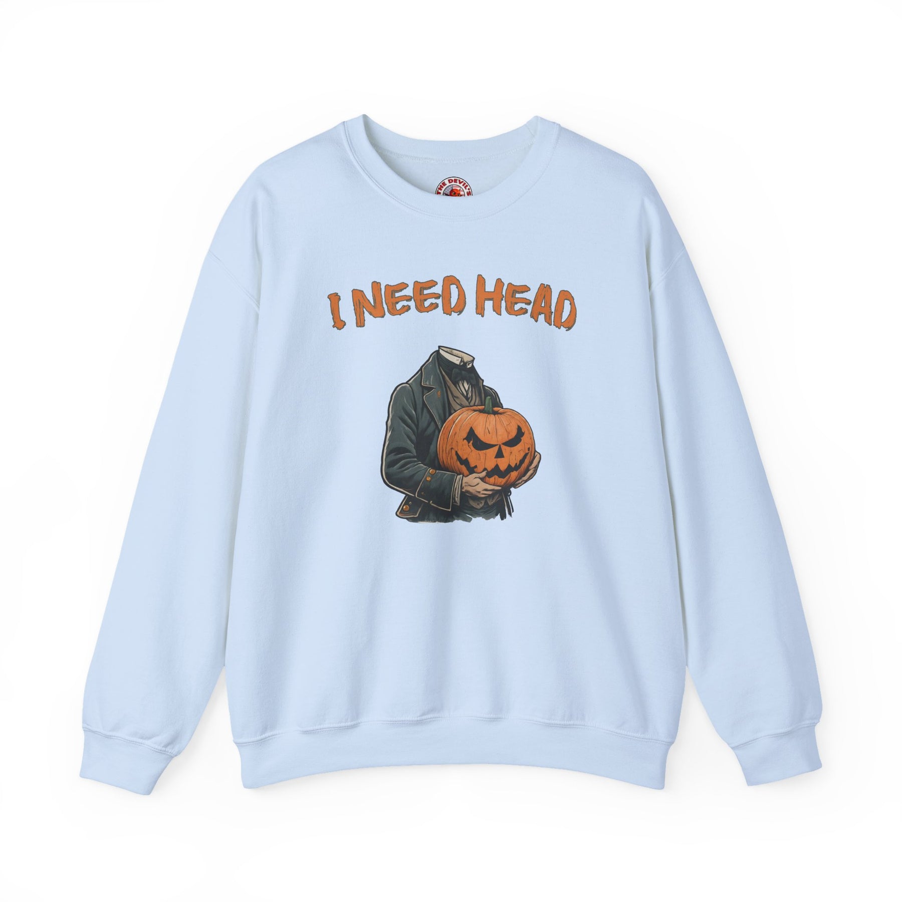 I Need Head Crewneck Sweatshirt. Let everyone know what you need this Halloween.