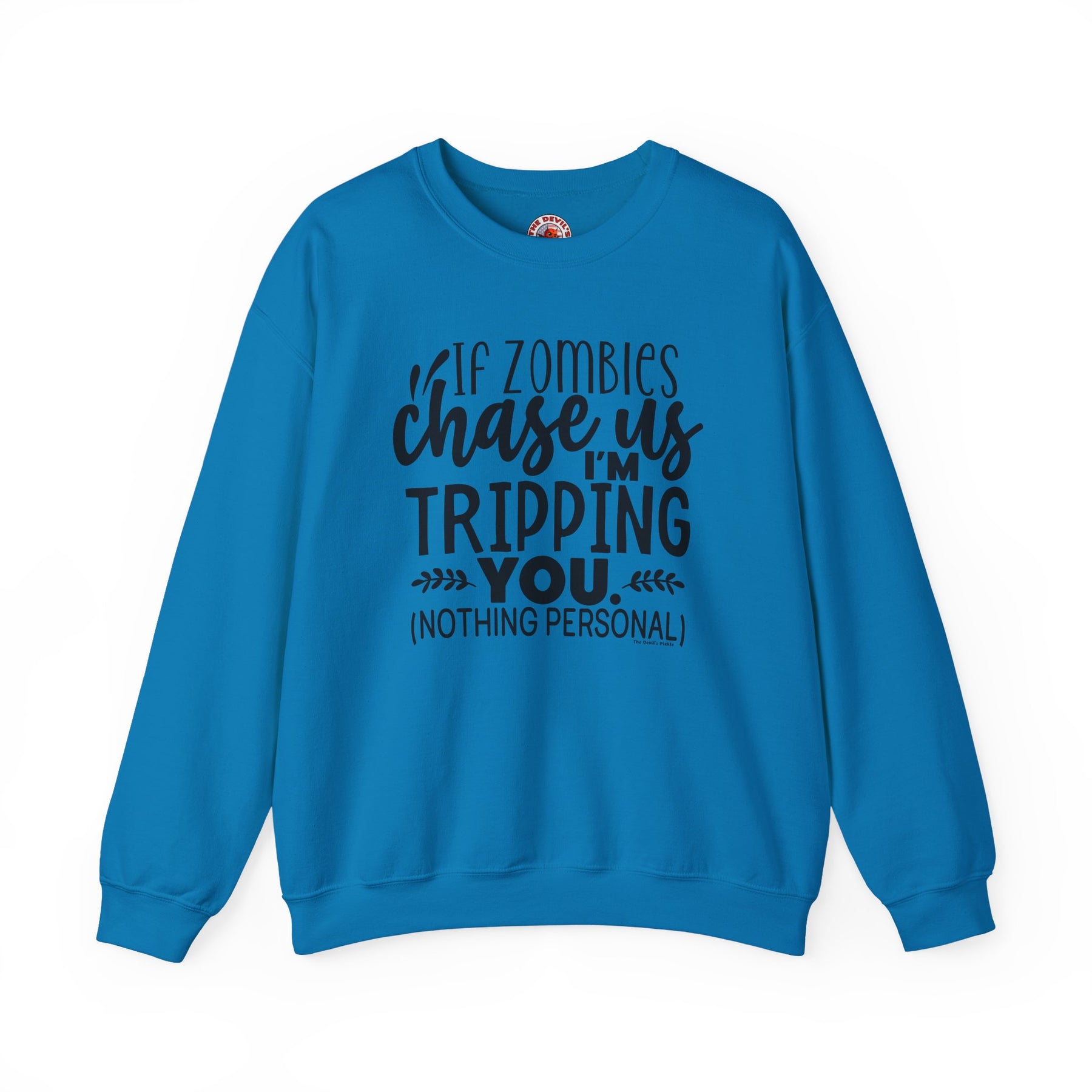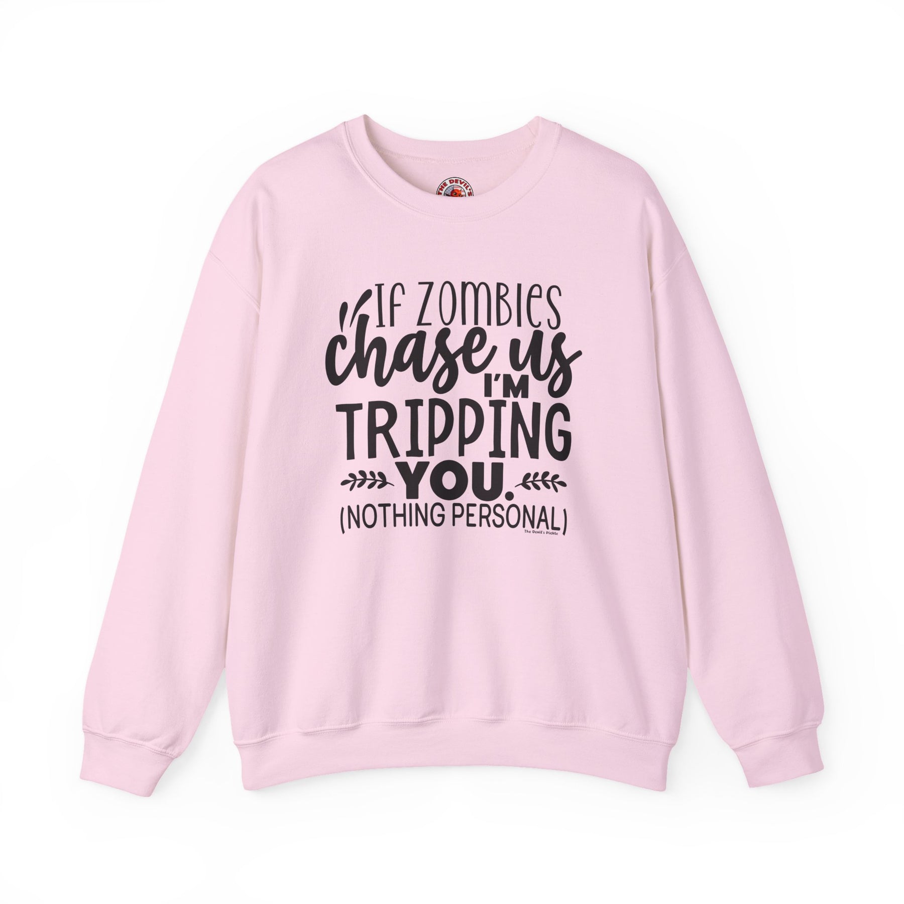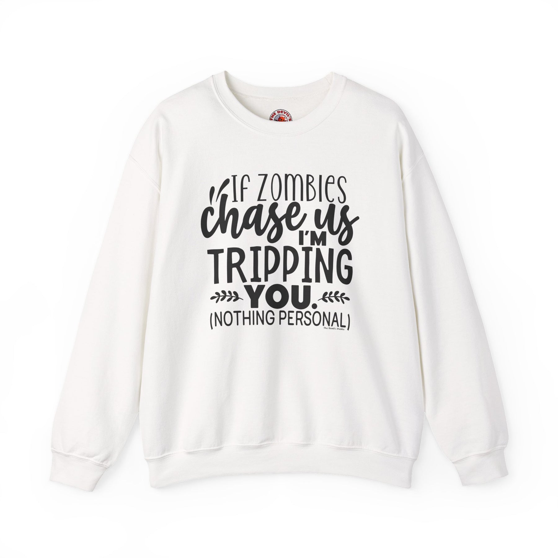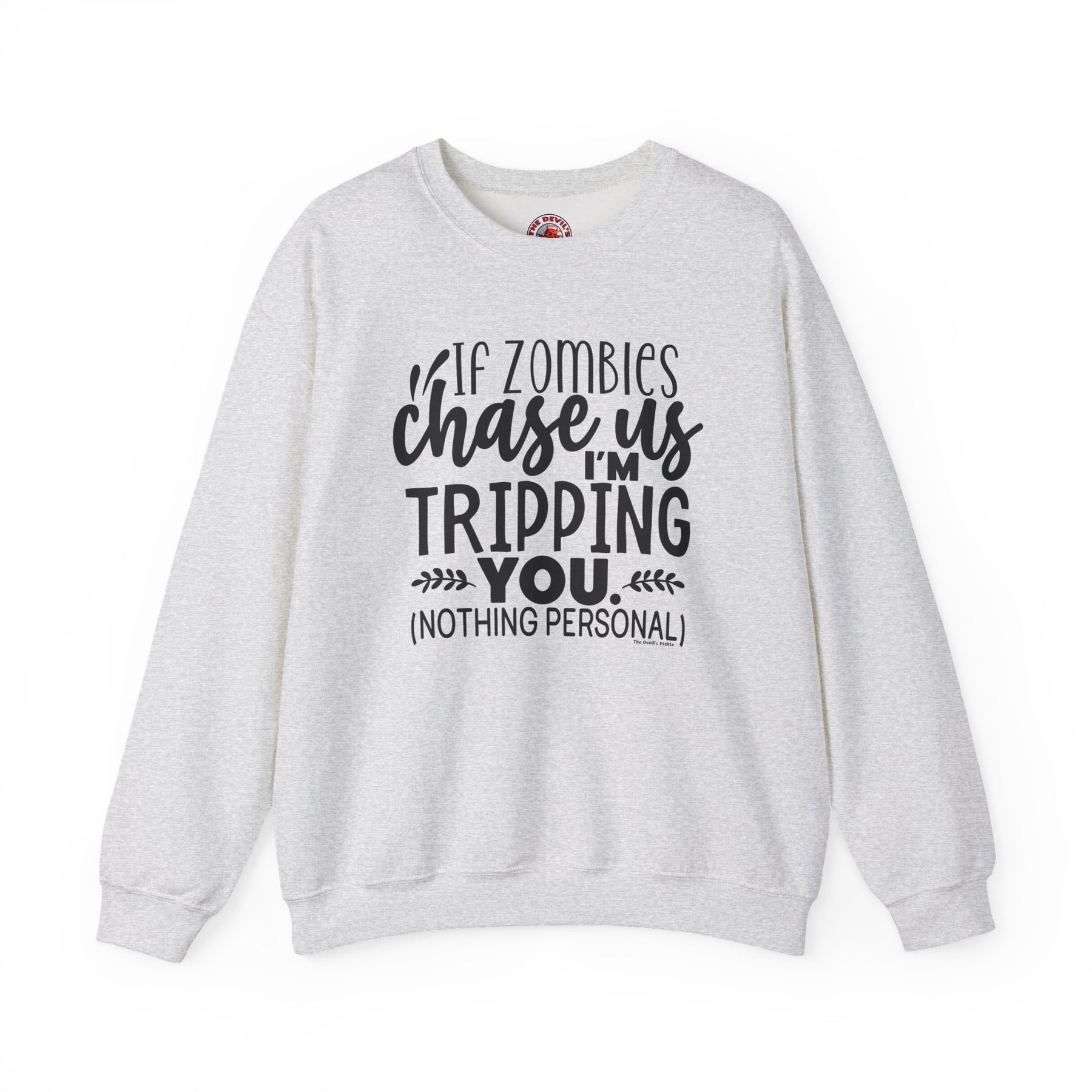 If Zombies Chase Us Crewneck Sweatshirt. Let everyone know what you're doing when the zombies come.