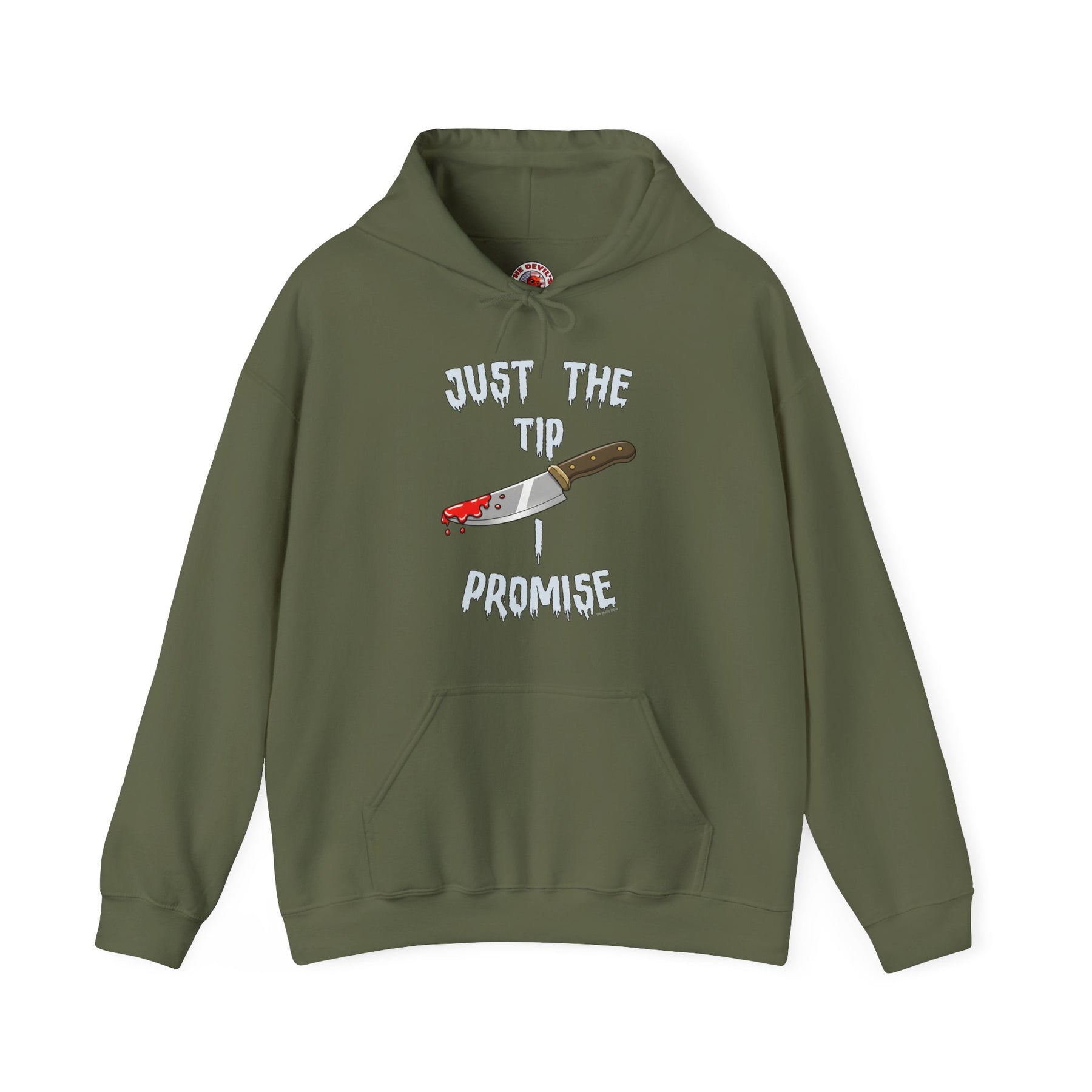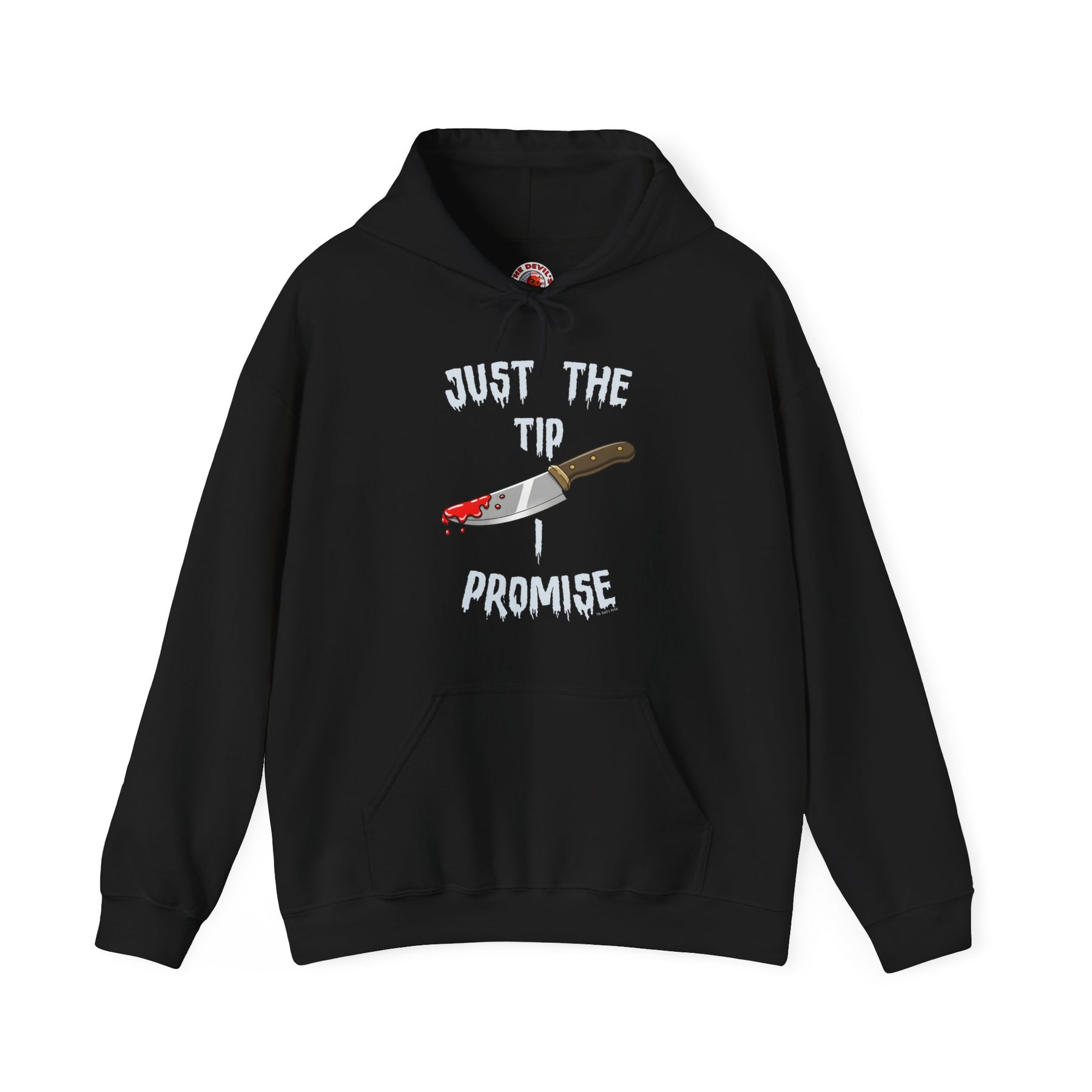 Just The Tip I Promise Hooded Sweatshirt. Let everyone know just how deep you're going in this Halloween.