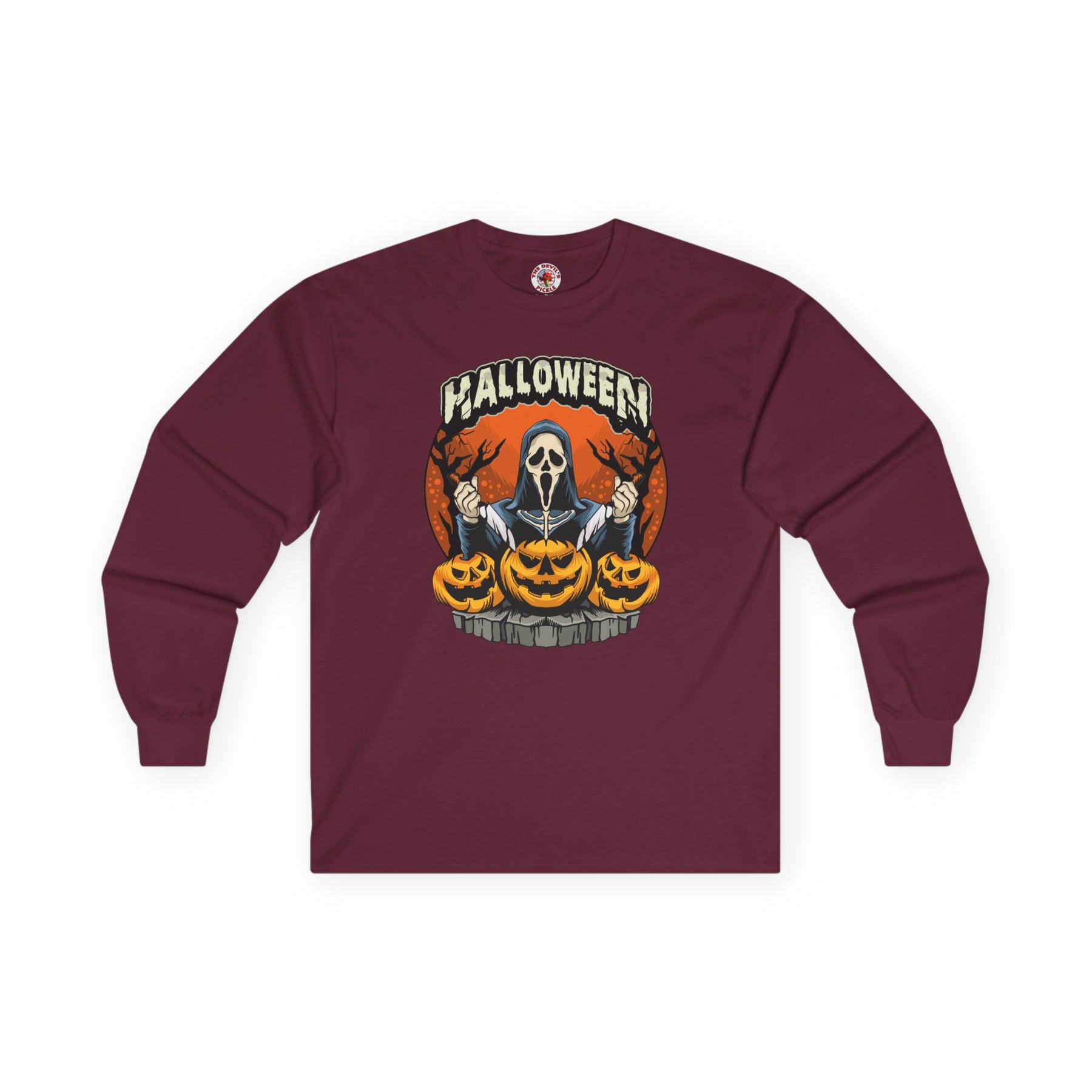 Screamer Killer Ghost Halloween Long Sleeve Tee. Let everyone know just how much you love Halloween.