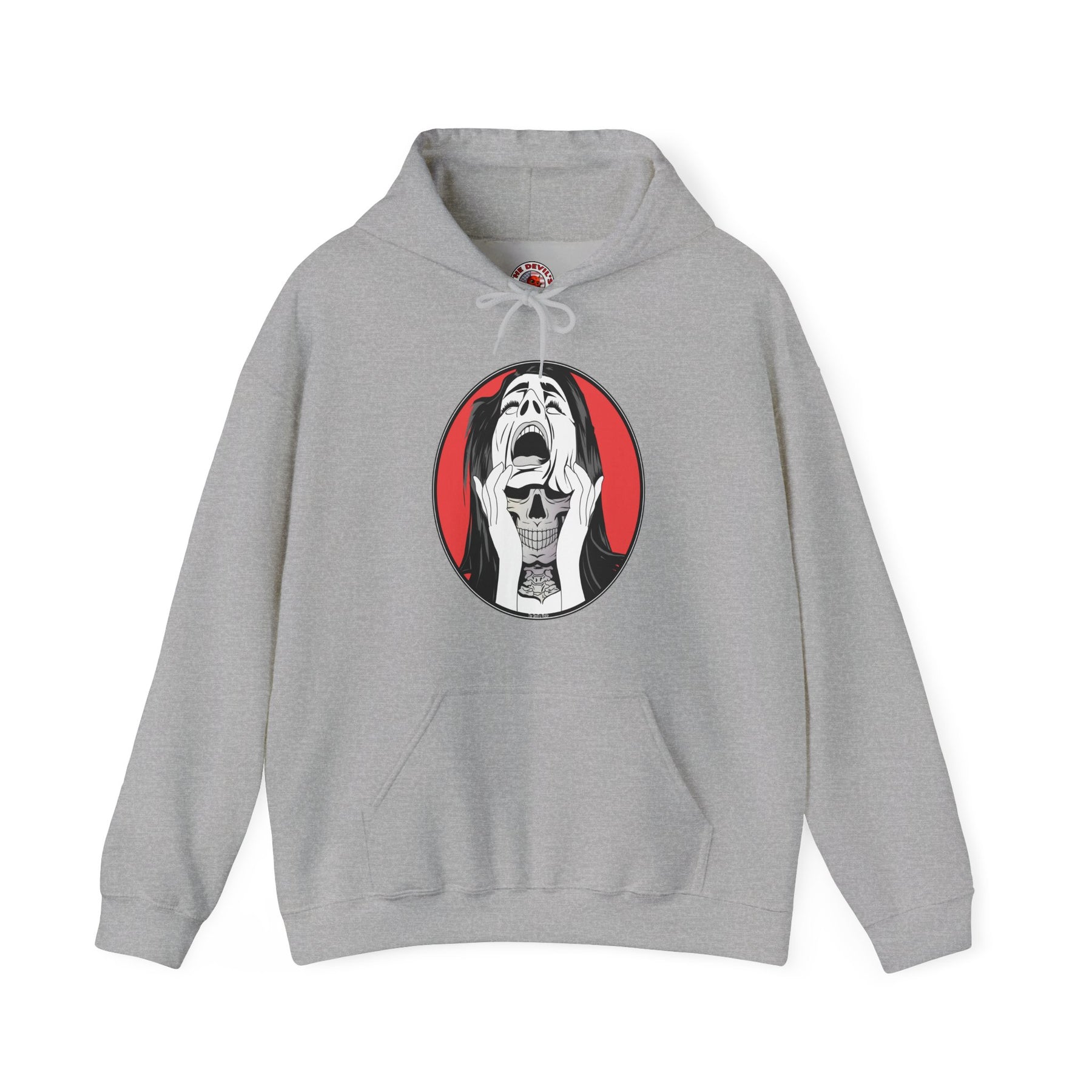 Skull Woman Hooded Sweatshirt. Show off you creepy Halloween side with this skull woman.